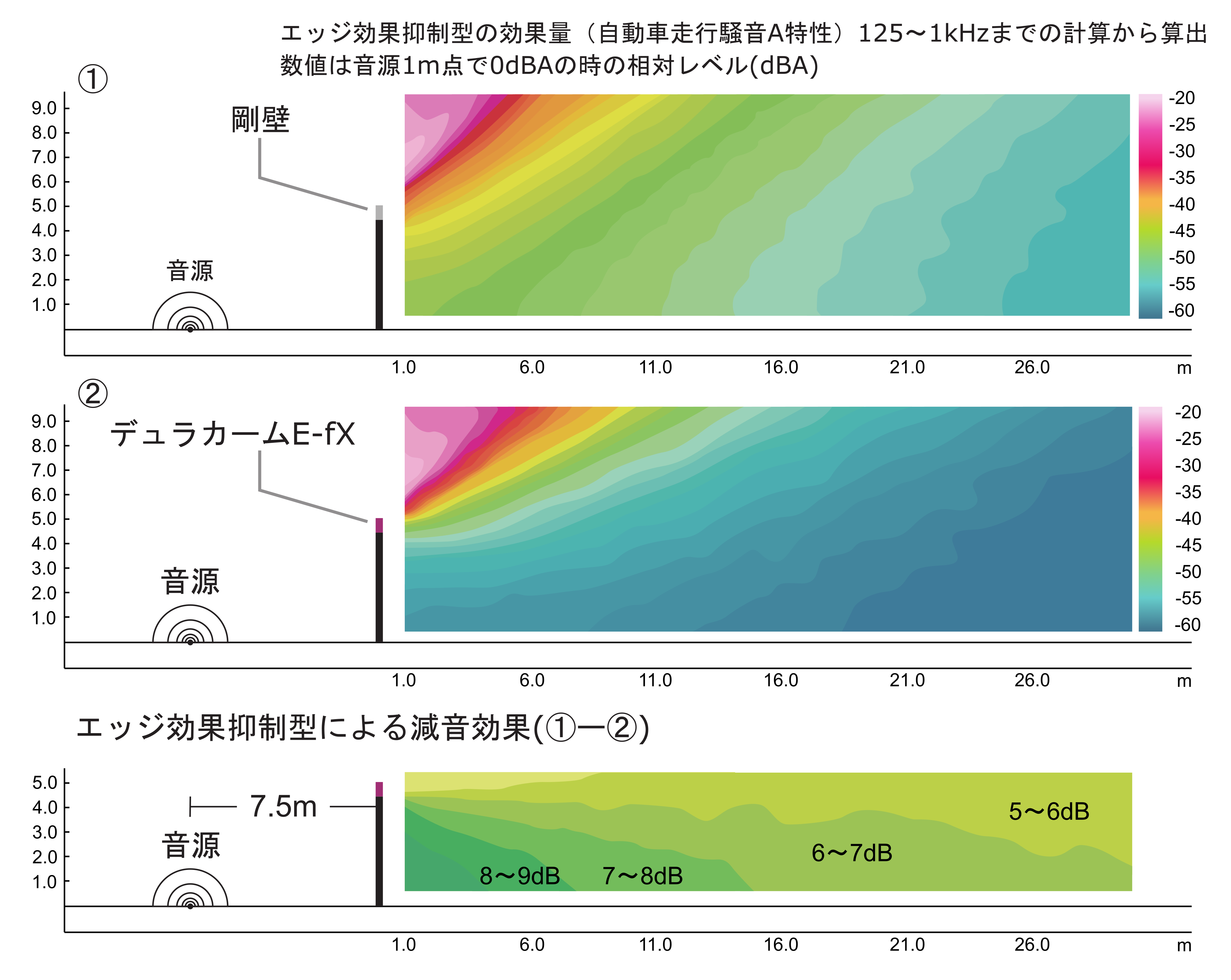 騒音シミュレーションページ内で、E-fXの効果を簡易シミュレーション出来ます。詳細効果の検討については是非お問合せ下さい。